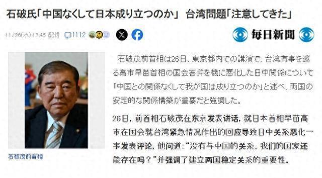在政治圈里,很少有人敢于说实话,石破茂的一句:“没有与中国的关系,我们的国家还能成立吗”挑明了事实。 不是因为没有中国,日本无法成立,而是离开中国,日本无法存活下去。