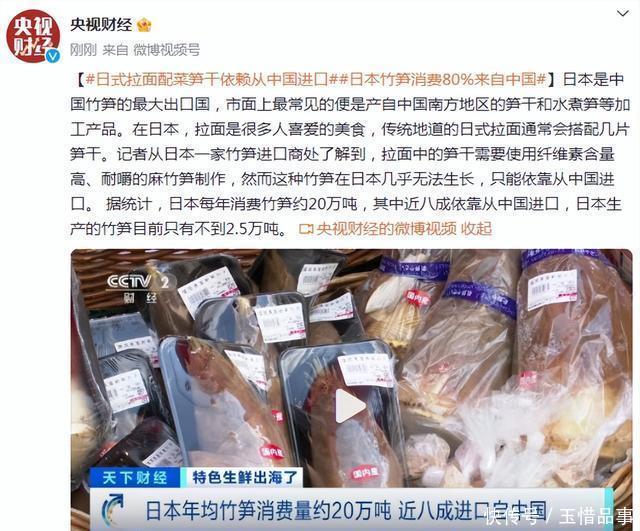 日本这个国家,作为一个经济大国,粮食却不能完全自给自足。数据显示,日本每年进口的冷冻蔬菜和加工海鲜,有相当一部分来自中国。 尤其是竹笋和笋干,日本80%的竹笋供应都依赖中国,而日式拉面中常见的笋干原料麻竹笋几乎完全靠中国出口。