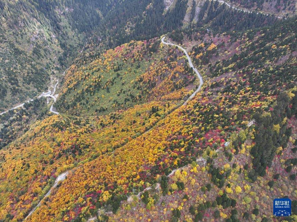 r深秋已至,位于西藏林芝的色季拉山层林尽染,构成一幅壮丽的高原画卷。